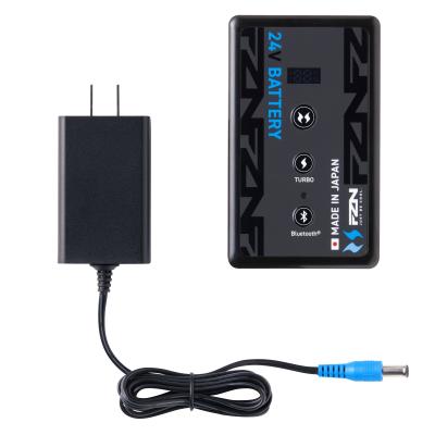 | 機能 | 風量:ハイパワーファン(サンエス社商品番号:RD9610PH/RD9620PH) 強:約4.5時間、中:約9時間、弱:約22時間 ※使用可能時間は、使用環境(気候、着用状況など)や機械的条件(充電回数など)で変動します。 出力:強(12V)、中(9V)、弱(6V)、USB(5V) 出力電流:最大2A 極性:センター(+)極 充電時間(目安):約4時間(残量0→100%までの時間)※周囲温度により変動します。 |