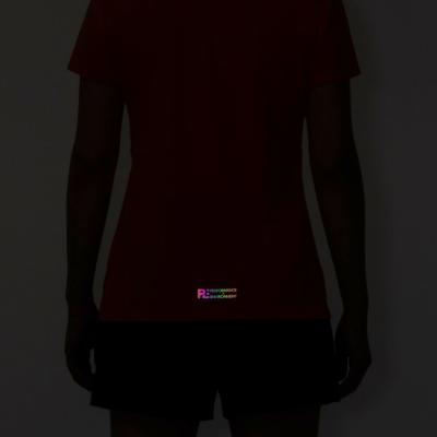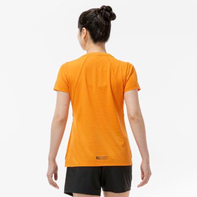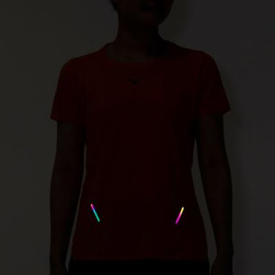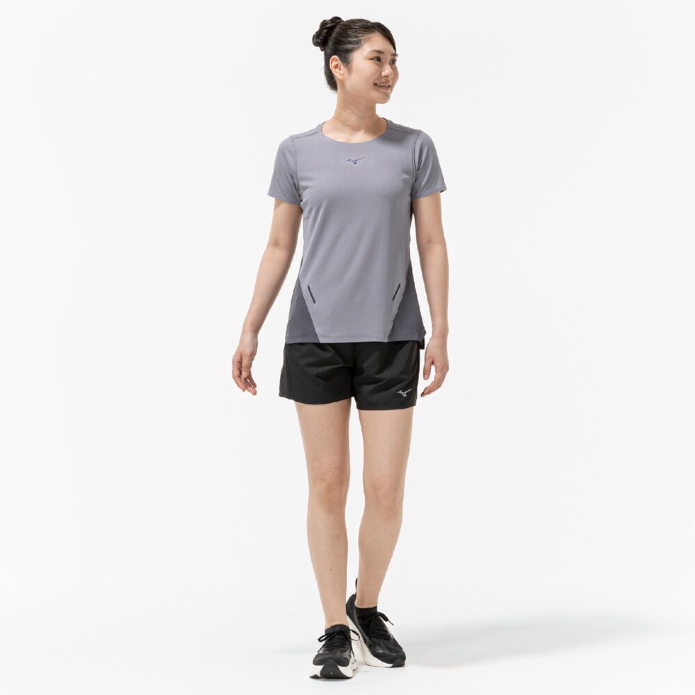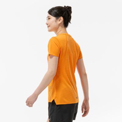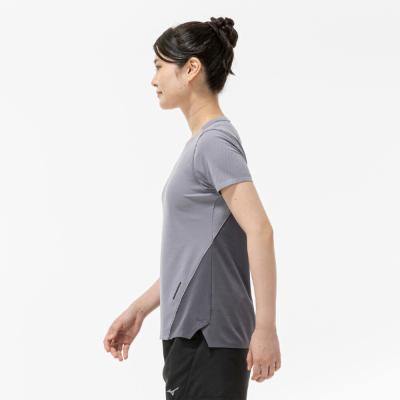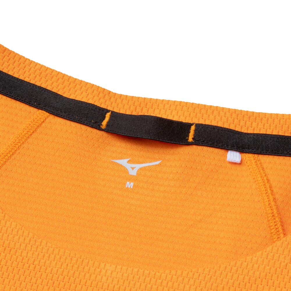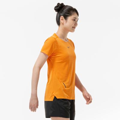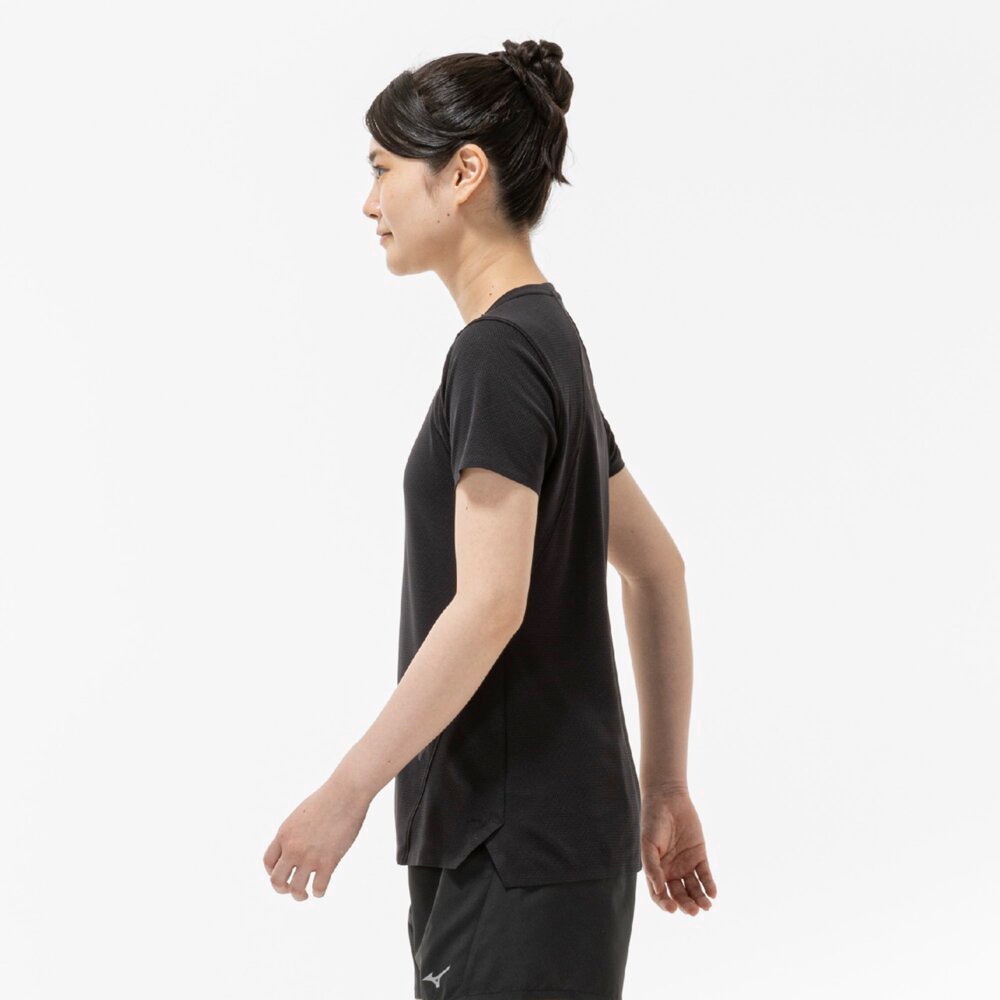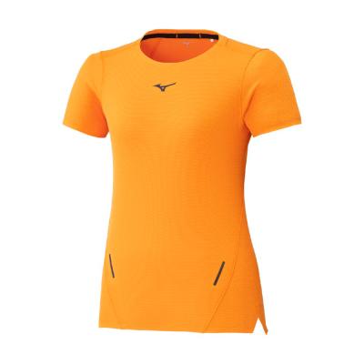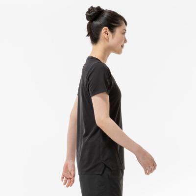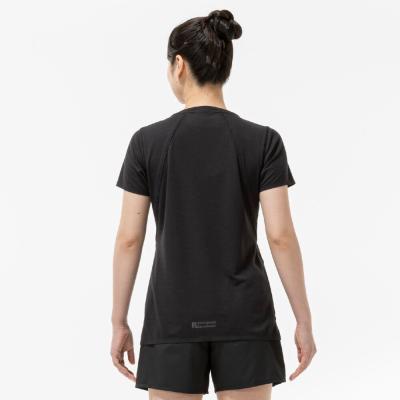 汗の膜が生地の通気性を低下させ、衣服内の温度上昇やべたつき感などの原因となっていることに着目し開発された素材『ドライエアロフロー』。襟元と裾、袖口の圧着仕様が肌当たりを軽減し、快適なランニングをサポートします。また、再帰反射プリントを使用しているため、ナイトランにも配慮した設計になっています。