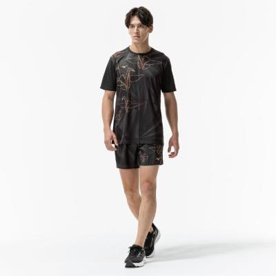 ドライエアロフロー素材の中でも、ランニングに特化した軽量感のある素材を採用しており、グラフィックを昇華プリントで入れることで、軽量感を損なう事なくデザイン性の高い商品に仕上げました。