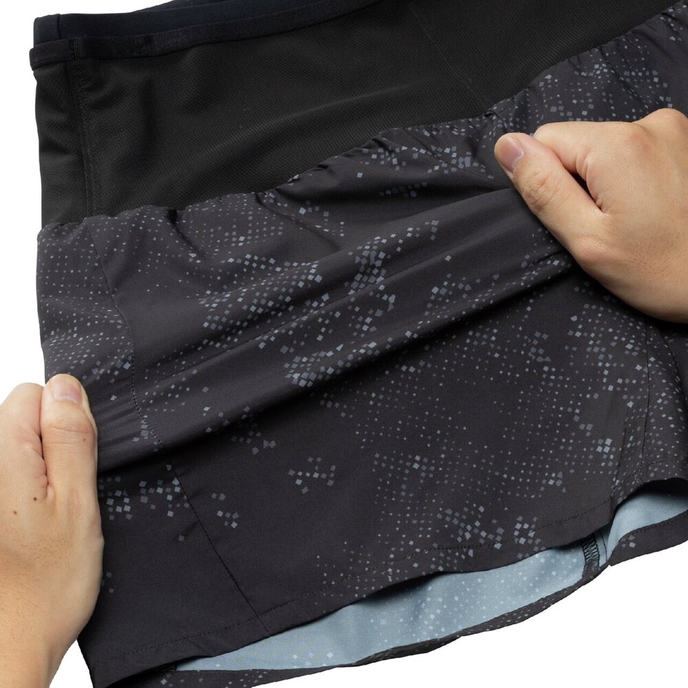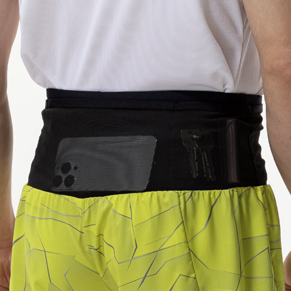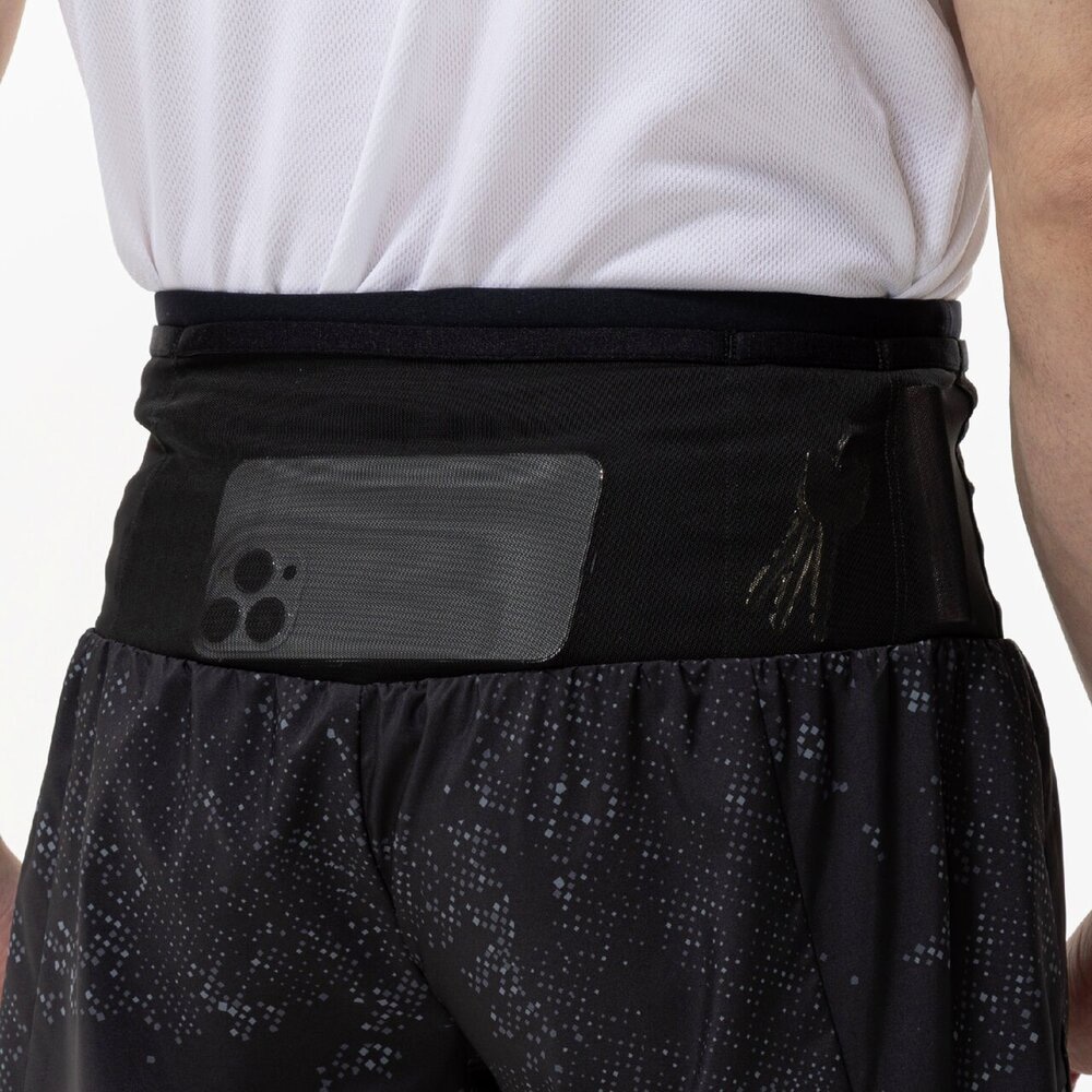 「あなたのRUNが、このひとつに収まる」大人気マルチポケットパンツのグラフィックモデル。素材には伸縮性に優れたリサイクルポリエステルを使用し、環境にも配慮した商品です。スマートフォン、鍵、小銭、ゼリー、バーなどを携帯して走るランナーに向けて開発されたランニングパンツ。腰回りに、ストレッチ素材の360°ポケットを搭載。収納力と揺れにくさにこだわった独自設計。ウエストロープ付き、インナーパンツなし。