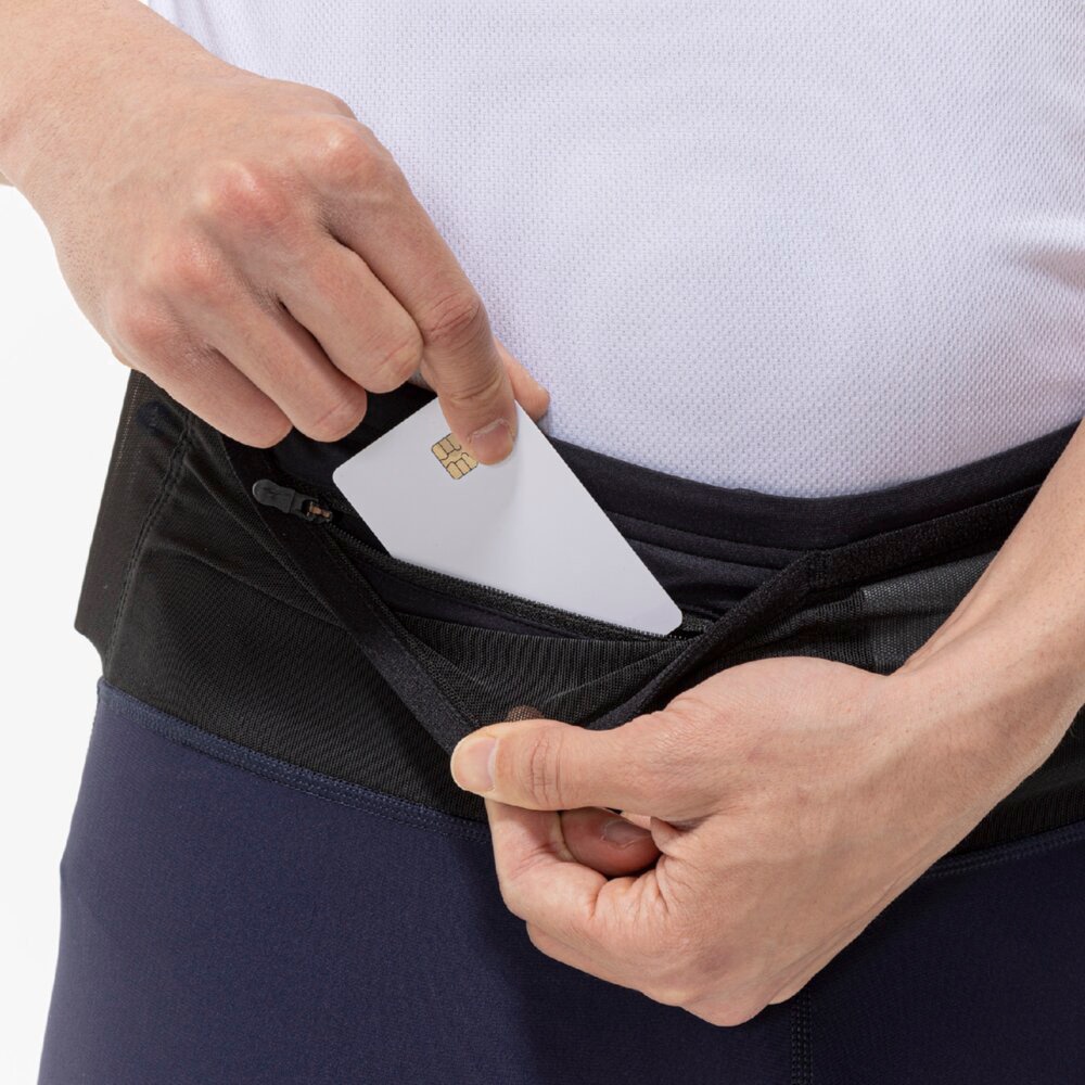 腰回りの360°ポケットにジップポケットが付いている為、貴重品をもって走る際にも安心です。