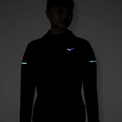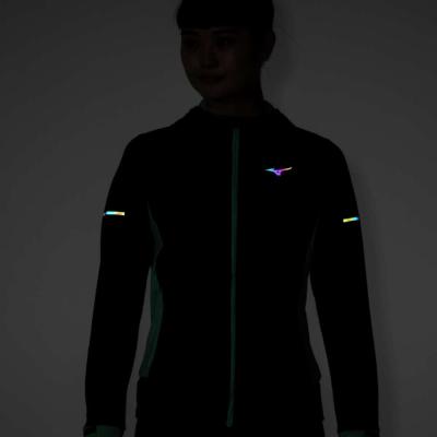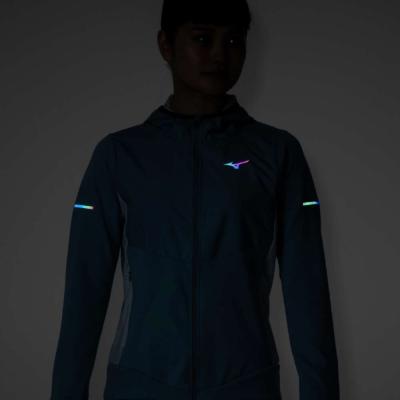 ■ブランドロゴネックテープ、ナイトランをサポートするオーロラ反射プリントを搭載。