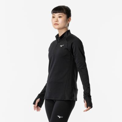 ■裏起毛ストレッチ素材のハーフジップシャツ。