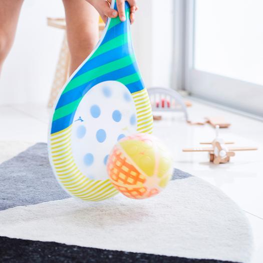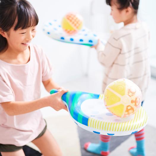 ■子どものうちに身につけておきたい「打つ」動作を中心に、様々な動作を習得できる。■二重構造でラケットを膨らませたりへこませることで難易度を調整可能。
