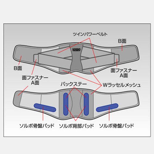 ■ソルボ骨盤パッドが仙腸関節を固定し、腰の安定を保ちます。