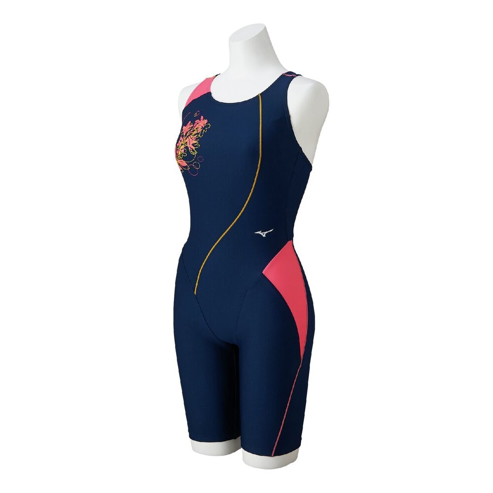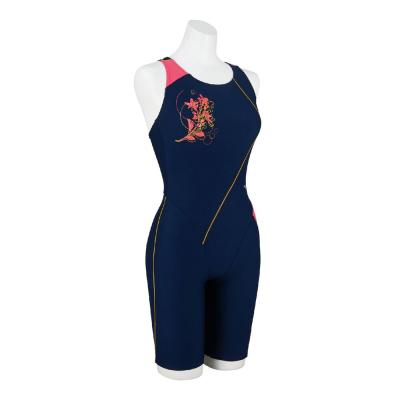 【Seasonal Unique】ステッチで描く曲線が美しい長持ち水着です。日を浴びたゆずの花と幾何学模様を組み合わせたデザインです。