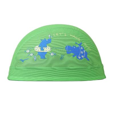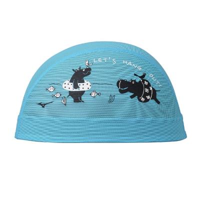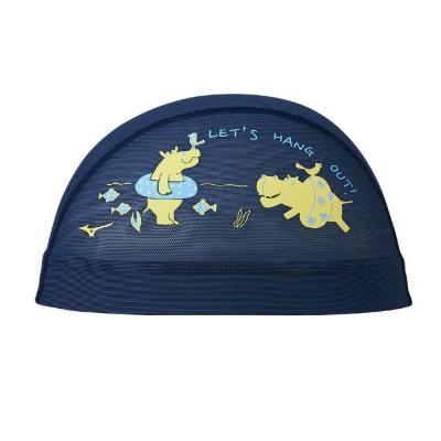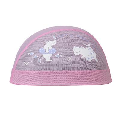 浮き輪を持ったカバたちが楽しく泳いでいるデザインです。水抜けが良く、ムレ感が少ないメッシュキャップ。