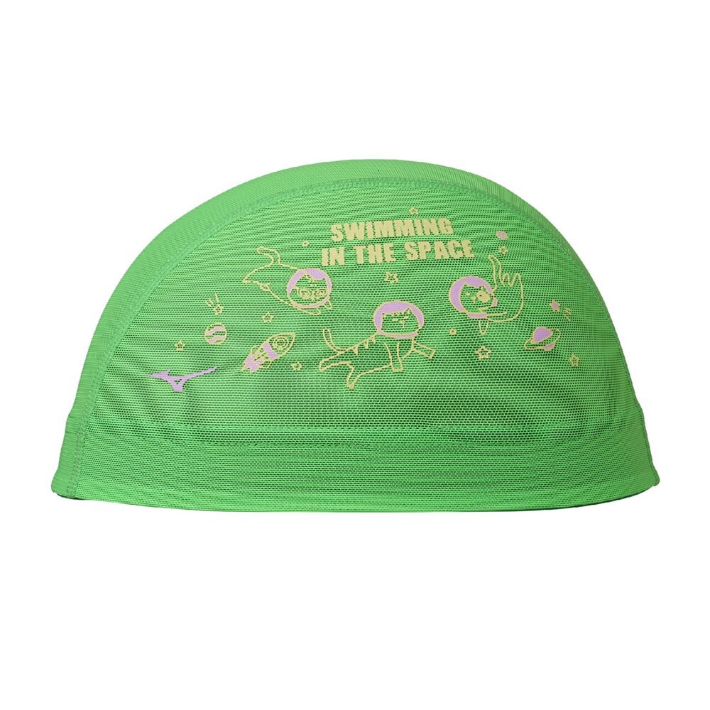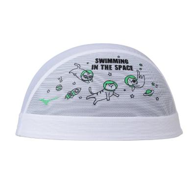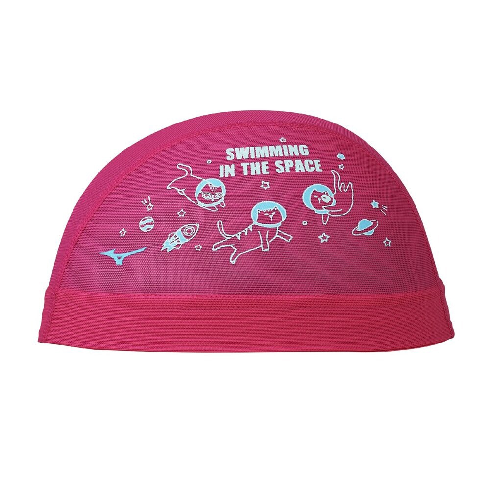 ネコが宇宙で泳いでいるデザインです。水抜けが良く、ムレ感が少ないメッシュキャップ。