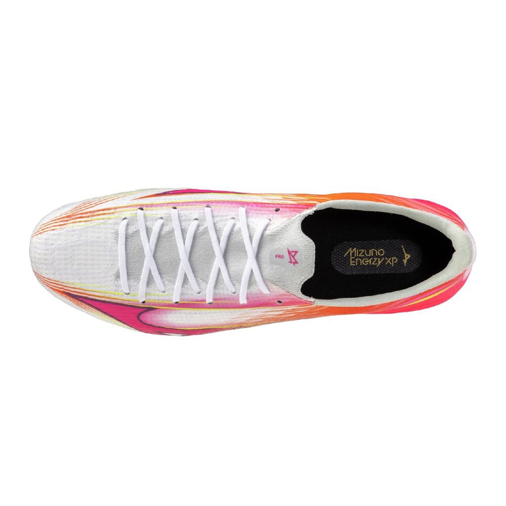 ニット素材を採用した新3層構造のアッパーが足を包み込むような柔らかなフィット感を実現。アウトソールはα Triangle Stud採用で、縦へのスピードにフォーカス。トップモデルに比べて、耐久性のあるアウトソールが魅力。ミズノ史上最高のインソール用高反発素材を使用した、ミズノエナジーxpインソールを採用。シューズの命とも言えるラストには、Engineered Fit Last NEOを採用。