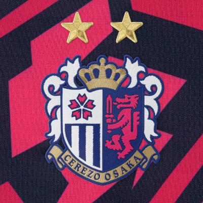 -Next Leap- これまで積み重ねてきた歴史の先に、まだ見ぬ景色がある。いま、桜は“勝色”に染まる。前身のコントラストは覚悟と決意を、走る亀裂状のグラフィックは限界を破り続けてきたクラブの軌跡を表現。ユニフォームの中央に差し込む光のエフェクトには、未来へ進むスピードとそこに宿る希望をイメージ。このユニフォームは、セレッソファミリーが纏い、次のステージを切り拓く証明となる。