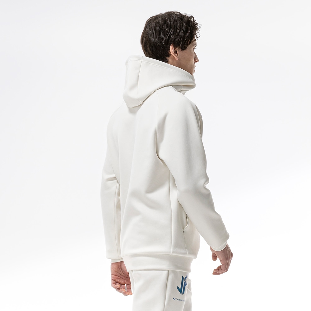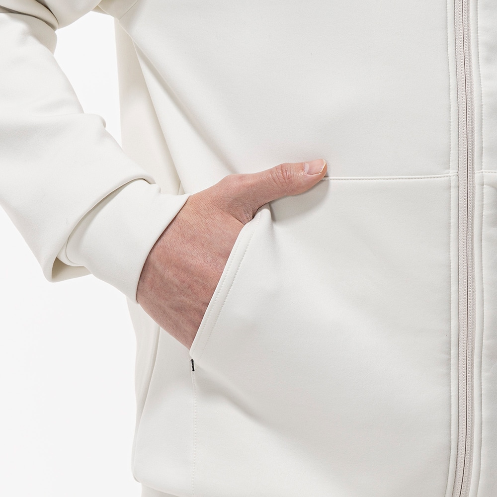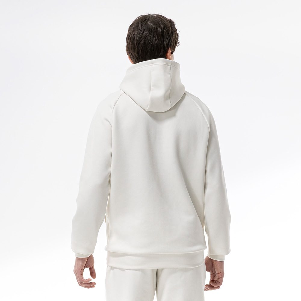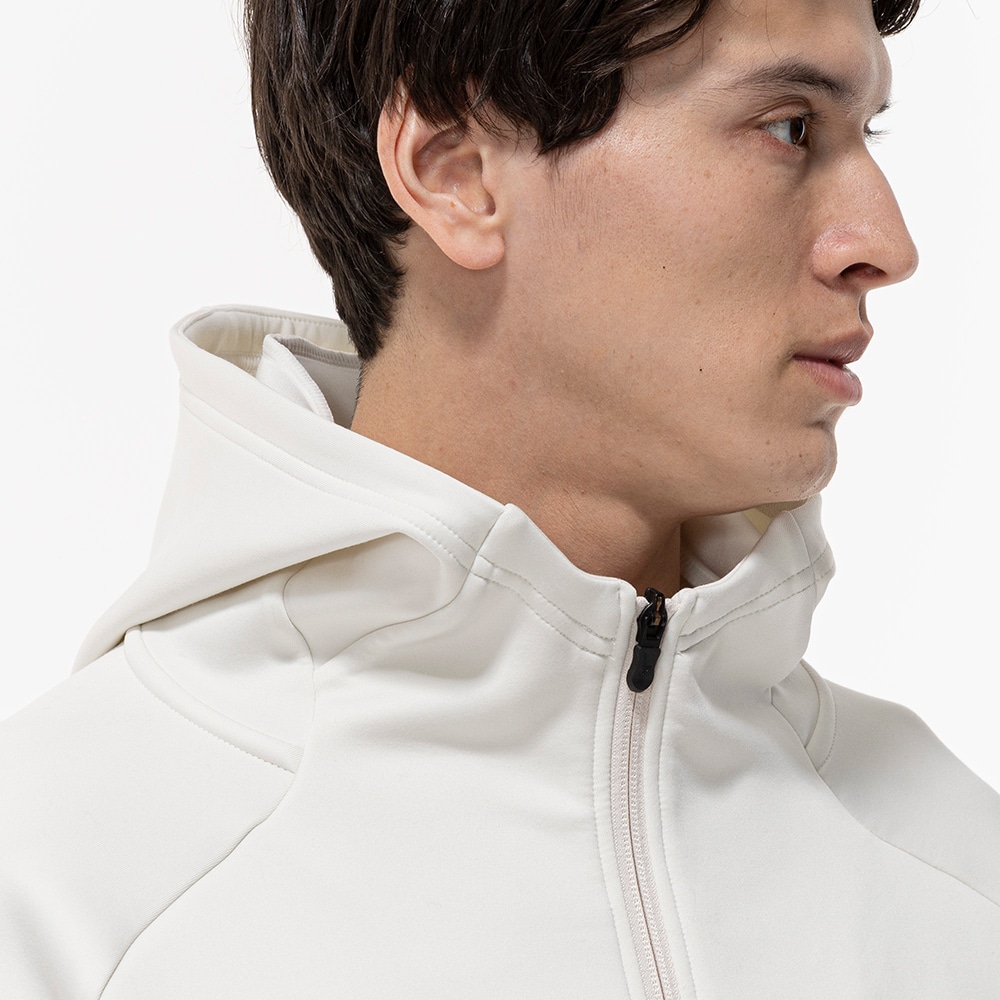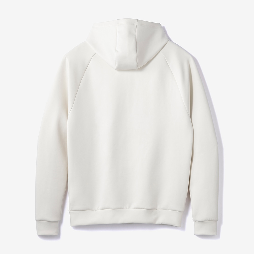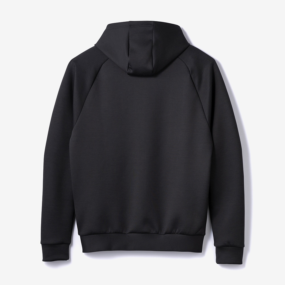■ソフトで綿ライクな両面ピーチ起毛。独特な風合いが特徴の素材を使用したスウェットフーディ。