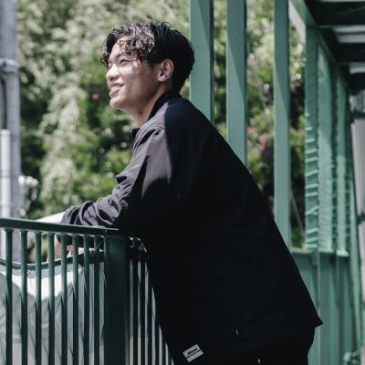 表面感のあるウーブン素材を採用したハーフジップジャケット。