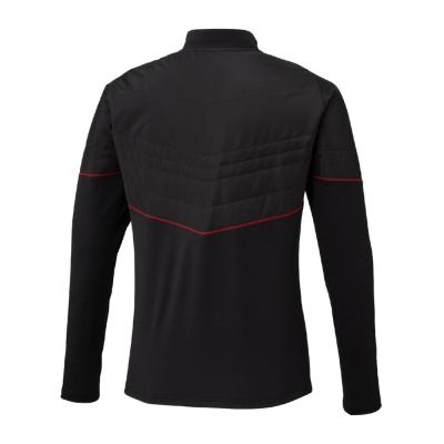■胸、背、肩にかけて中綿仕様にし、脇や腰回り、肘など動きのある部位にはストレッチフリースを配置。