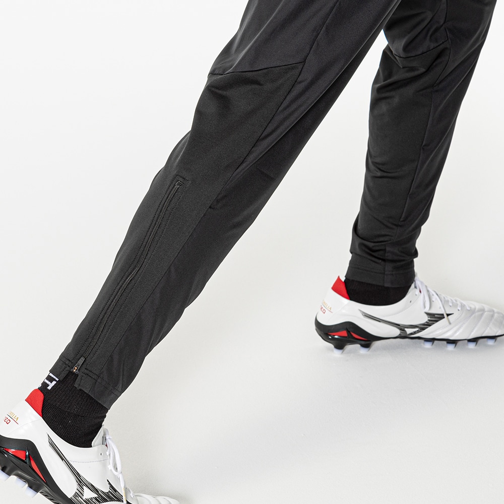 ■裾にストレッチ素材を配置すことで、裾のバタつきを押さえてスリムなシルエットを実現。