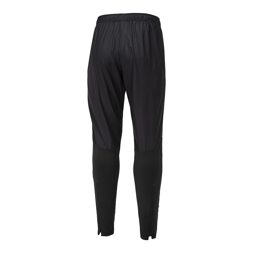 ■裾にストレッチ素材を配置すことで、裾のバタつきを押さえてスリムなシルエットを実現。