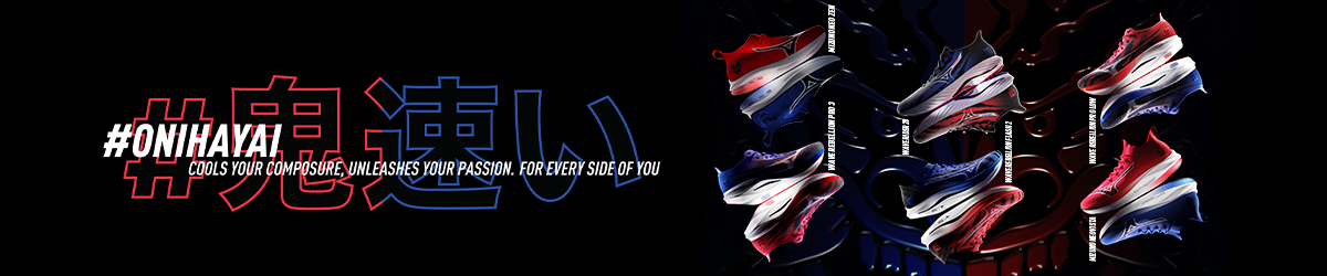 ■「鬼」柄を勢いのあるグラフィックで再現した「ONIHAYAI」パックで、ランニングウエアやアクセサリーでも展開しており、トータルコーディネートが可能です。