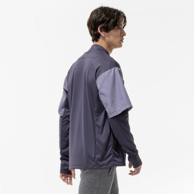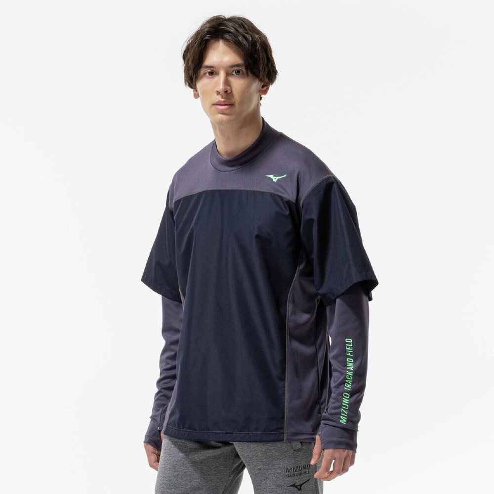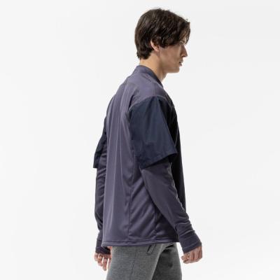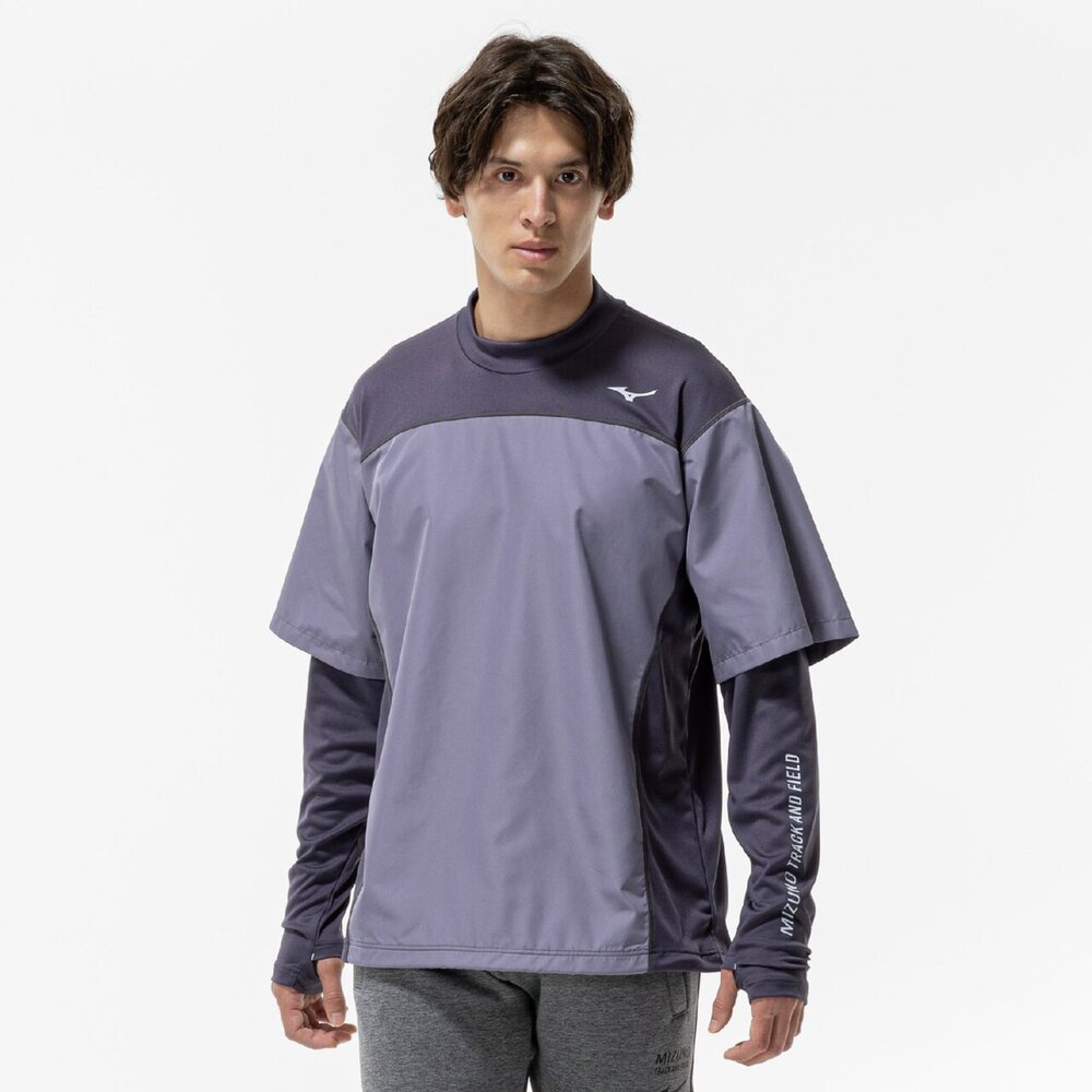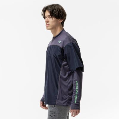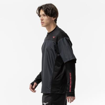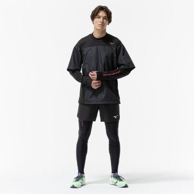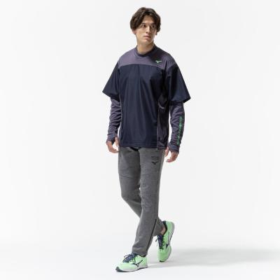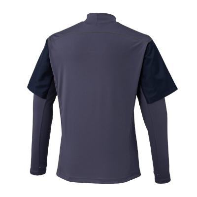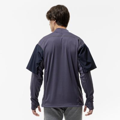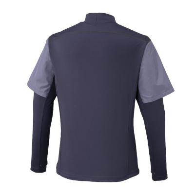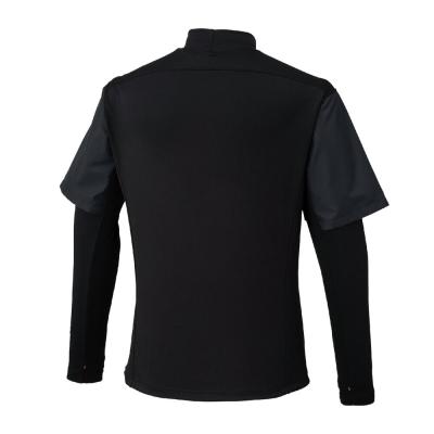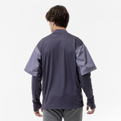 前身頃に防風素材を使っているので、冬のトレーニング、ランニング時の冷たい風の対策に使えるシャツ。