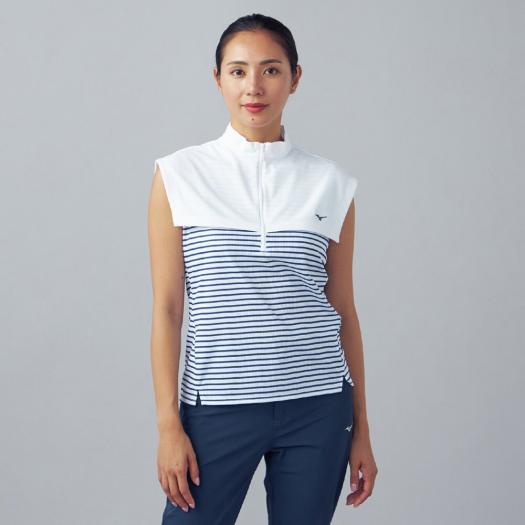 【汗処理/通気】ドライエアロフローボーダー半袖モックネックシャツ ウィメンズ