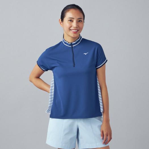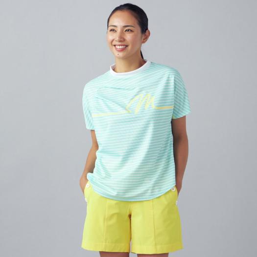 【汗処理/通気】ドライエアロフローボーダー半袖モックネックシャツ ウィメンズ