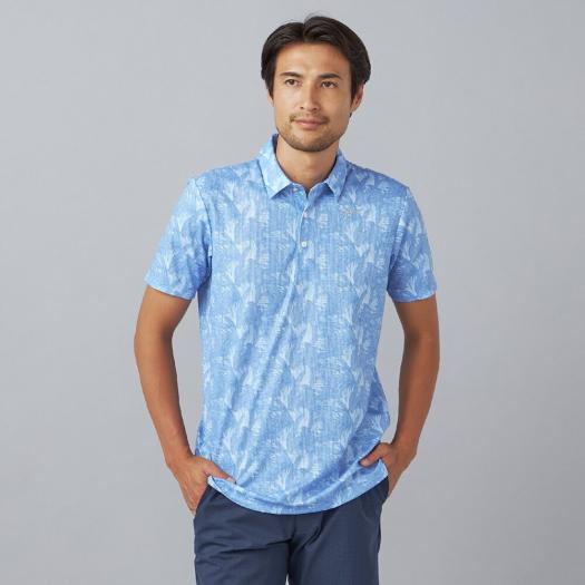 【汗処理/通気】ドライエアロフローリーフプリント半袖共衿シャツ メンズ